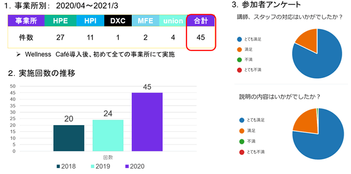 - ● オンライン対応によるWellness Café利用件数大幅増(24件⇒45件)